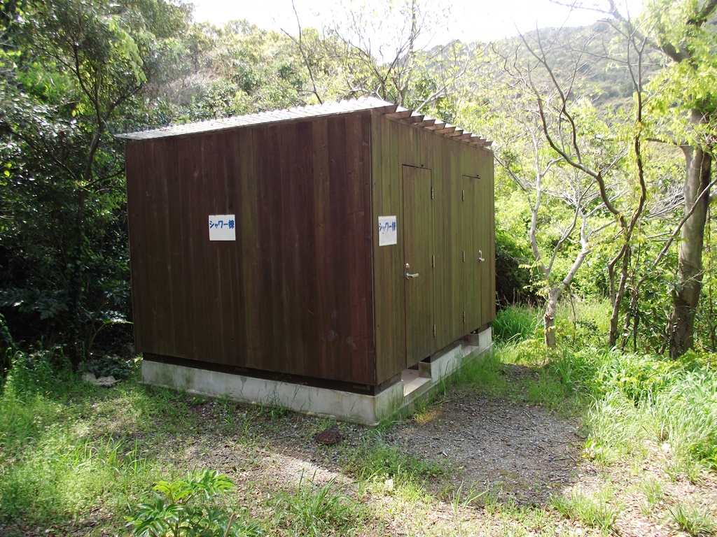 トイレは大型のお手洗い棟もありますが、女性用に浜から近い位置にバイオトイレも設置! 微生物の力で分解するため、水を使わない環境に優しいトイレです。 |